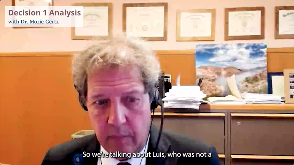 Patient history: Luis, an 80-year-old retired school principal, was diagnosed with multiple myeloma 9 months ago, when he presented with fatigue and back pain. A bone marrow biopsy showed 65% plasma cells. Fluorescence in situ hybridization (FISH) analysis detected a 17p gene deletion.