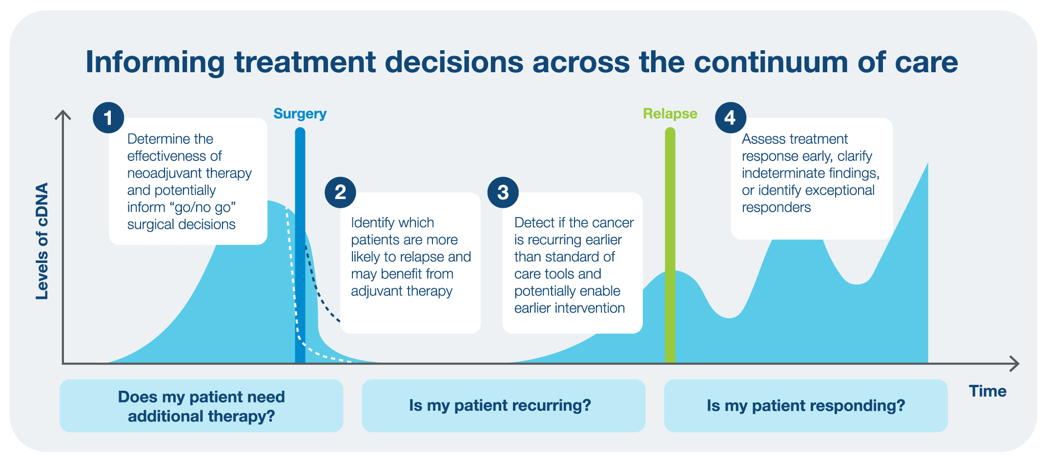 The future is bright for ctDNA testing, which is expected to become more widely adopted as a standard of care tool to help inform treatment in both adjuvant and surveillance settings. Many physicians today have already begun integrating this useful tool within the clinic to enable more informed adjuvant treatment decisions, closer surveillance, and real-time treatment response monitoring, potentially enabling earlier therapeutic interventions and ultimately improving patient outcomes.